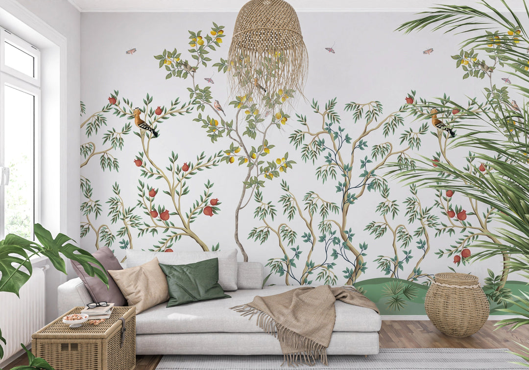 Papier Peint Japonisant Oiseaux en Douce Harmonie