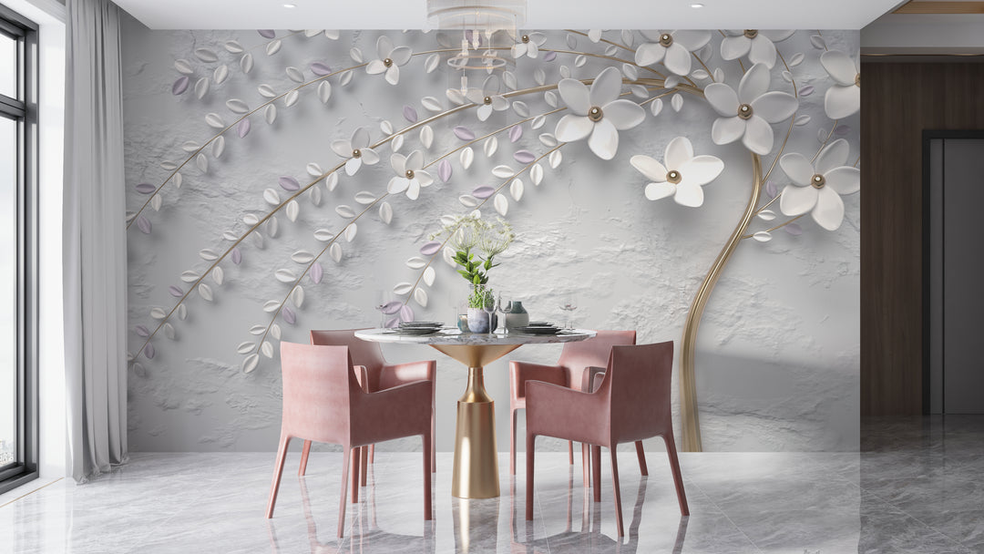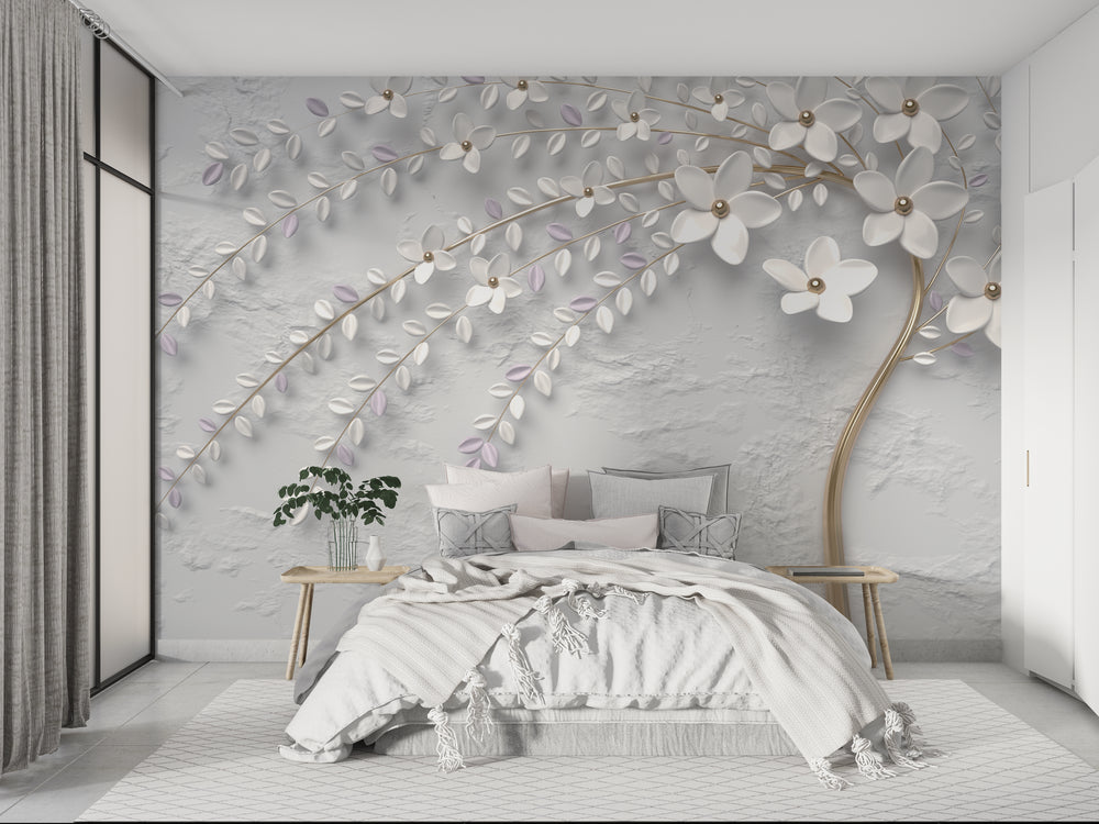 Papier peint panoramique arbre en fleur trompe-l'œil