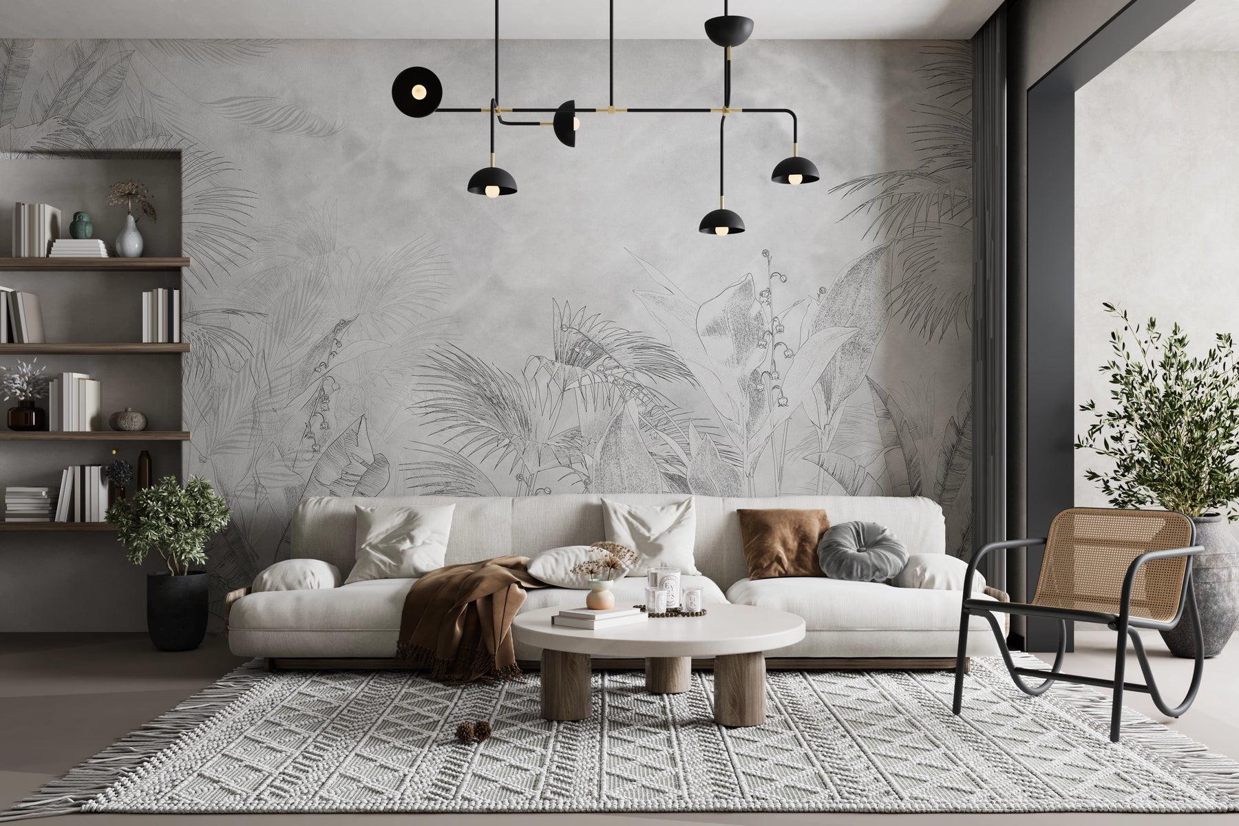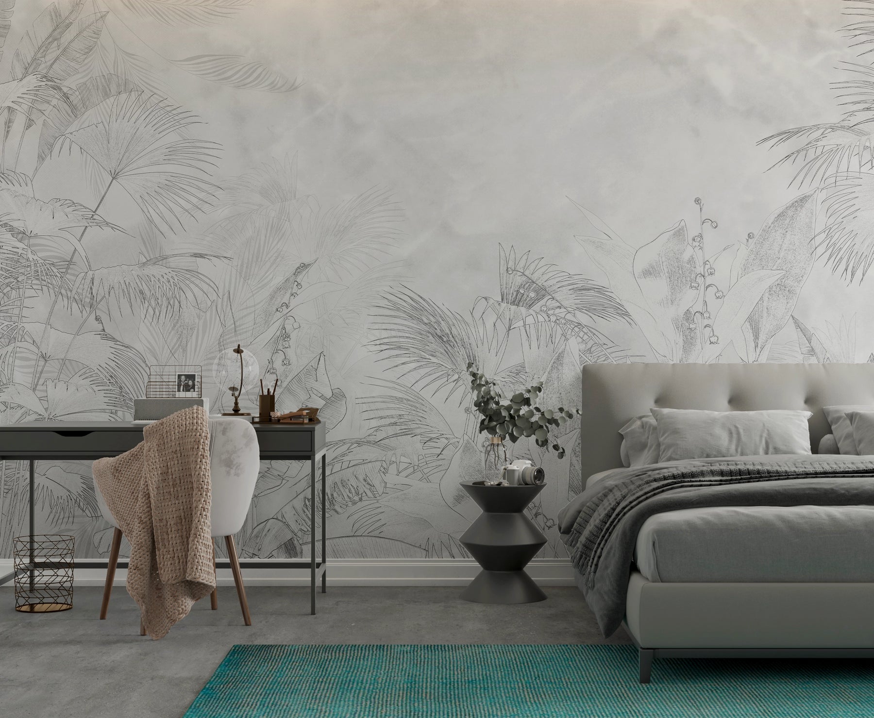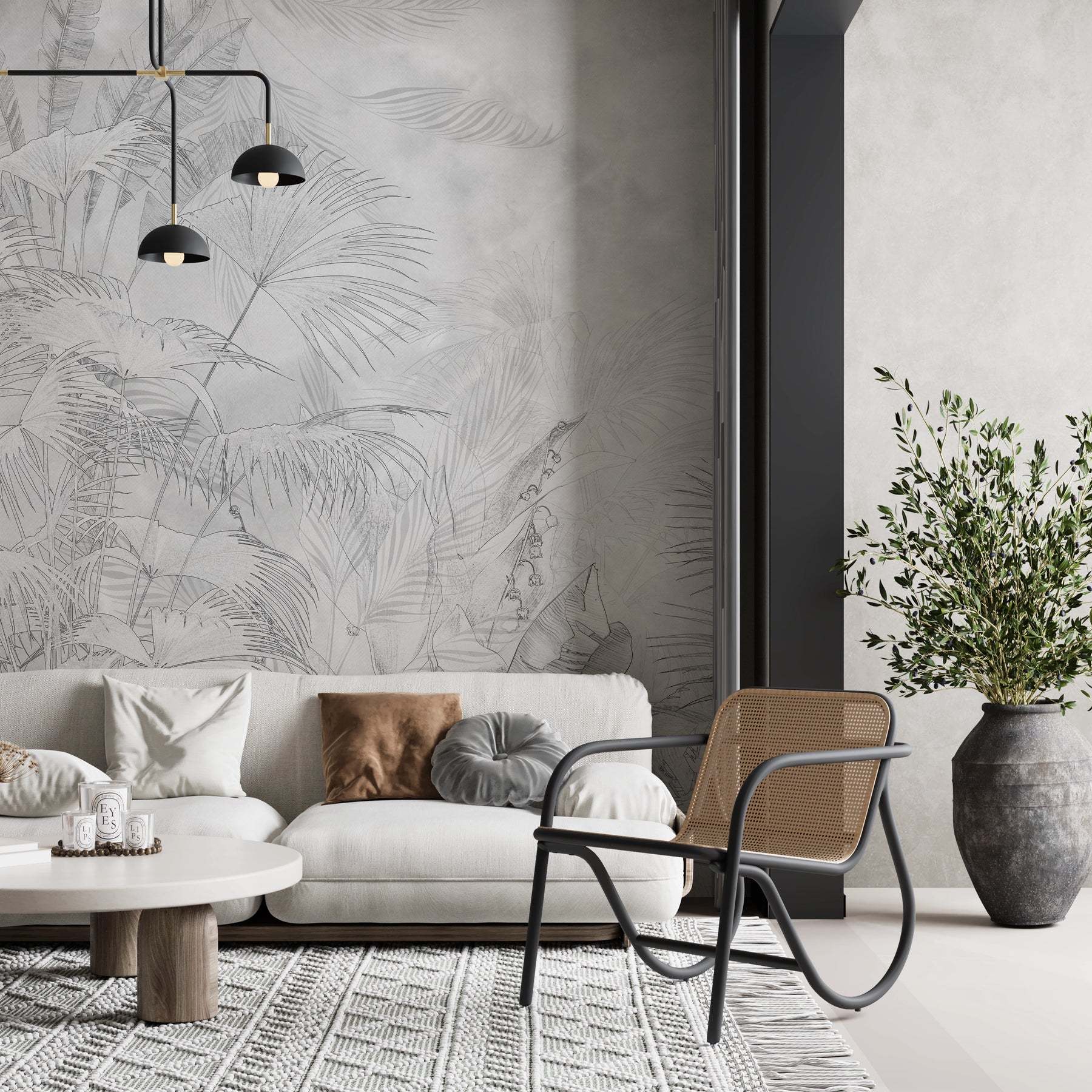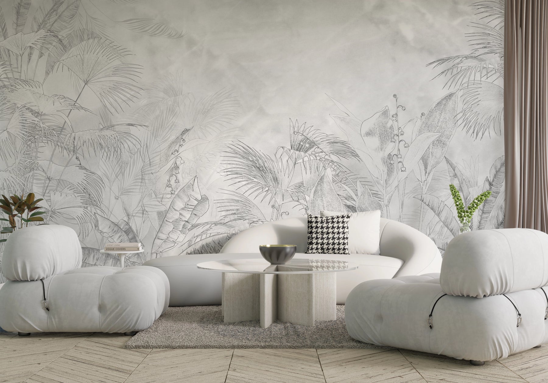 Plongez dans une ambiance exotique tout en subtilité avec ce papier peint panoramique noir et blanc. Les palmes et feuillages tropicaux, dessinés avec finesse comme au crayon, créent une atmosphère élégante et apaisante. Son style monochrome s’adapte à tous les intérieurs, apportant une touche naturelle et sophistiquée sans alourdir la décoration.