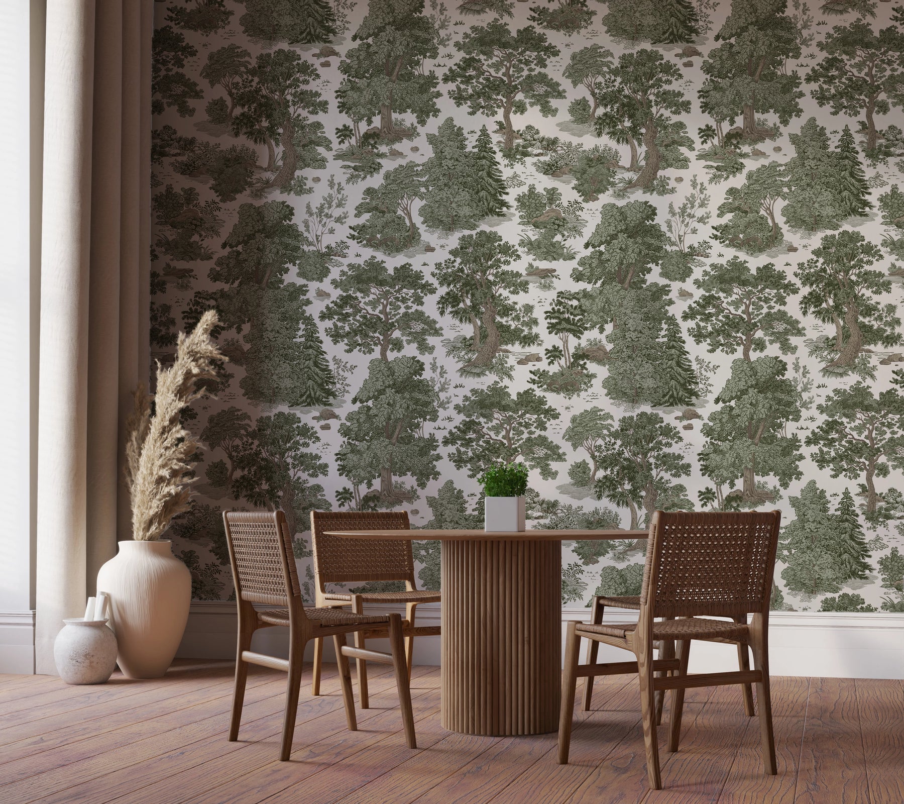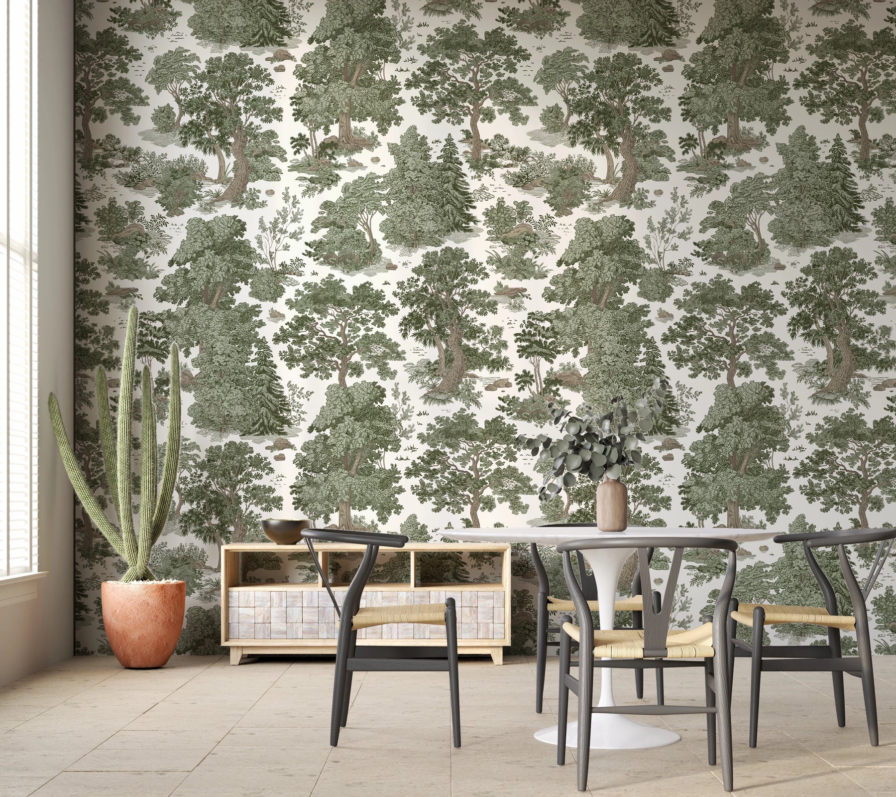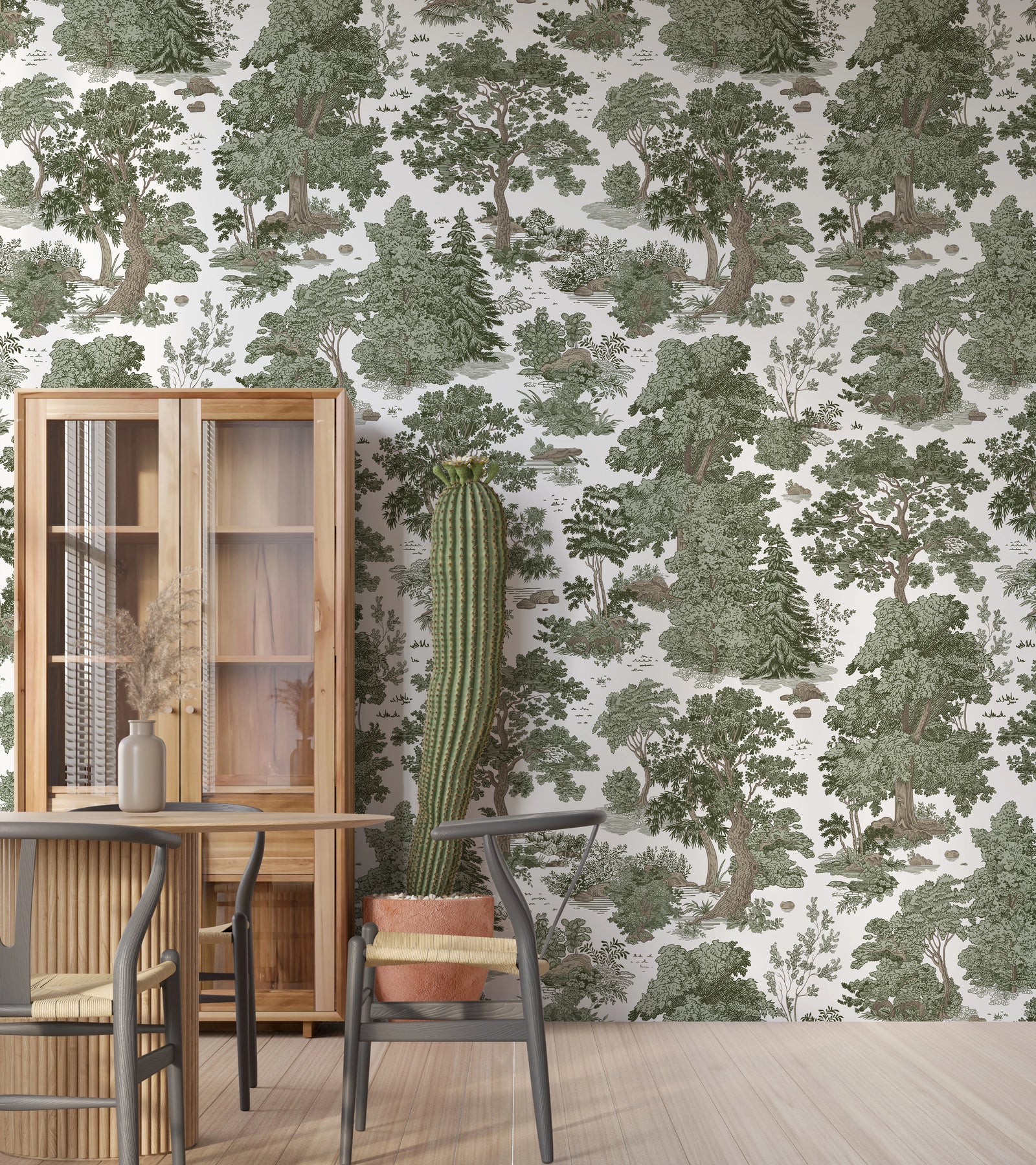 Eine schöne und detaillierte Abbildung, die die Süße einer bewaldeten Landschaft von gestern einfängt. Wie eine alte Gravur erinnert dieses Dekor die Ruhe eines stillen Waldes, zwischen Träumen und Nostalgie. Perfekt für eine warme und raffinierte Atmosphäre, findet es seinen Platz in einem Schlafzimmer sowie in einem Wohnzimmer oder Büro. Ein zeitloses Motiv, das die Modi mit Diskretion und Eleganz überschreitet.