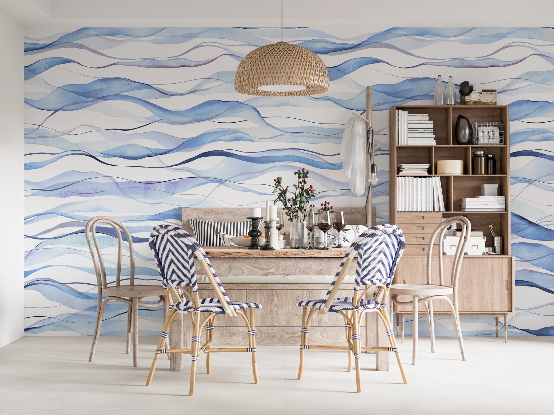 In Anlehnung an die Sanftheit eines ruhigen Meeres, kleidet die Tapete Ondes d'Azur Ihre Wände mit einer fließenden und beruhigenden Bewegung. Ihre Nuancen von bläulichem Aquarell verschmelzen harmonisch, um eine ruhige und helle Atmosphäre zu schaffen, perfekt für ein Schlafzimmer, ein Wohnzimmer oder ein Badezimmer.