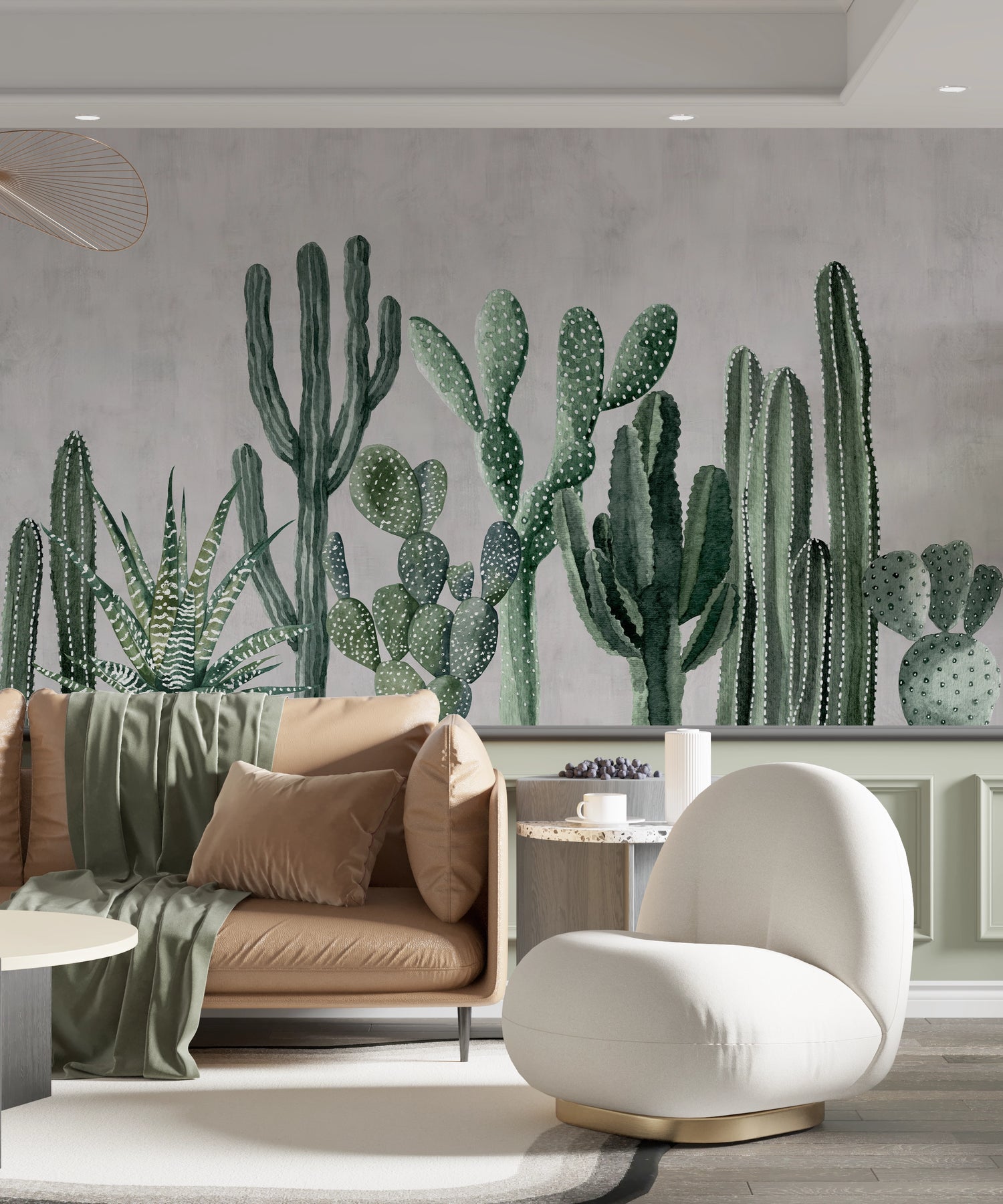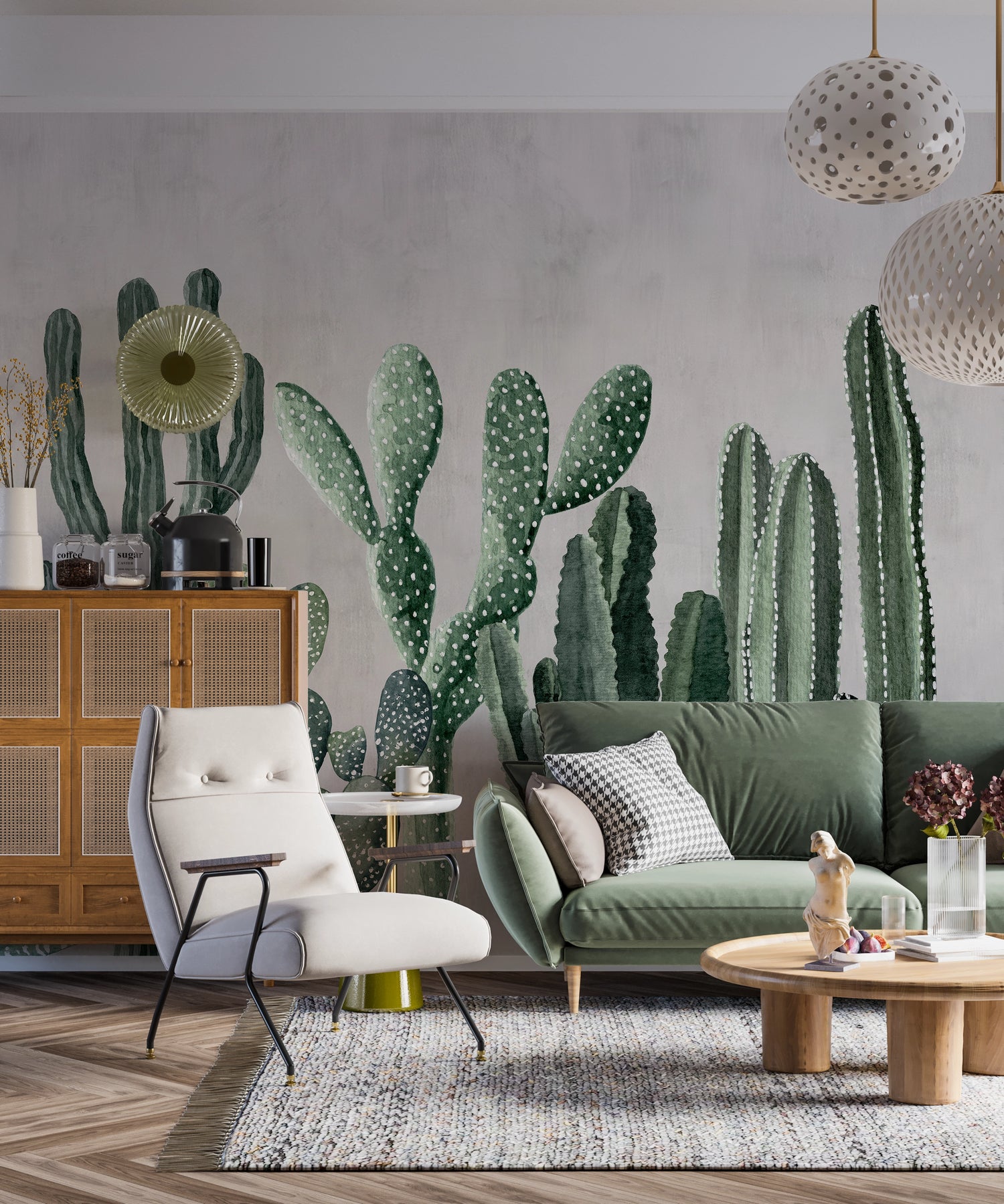 Ce décor panoramique met en valeur l’univers du désert et des plantes succulentes, tout en conservant une esthétique douce et stylisée. Sa composition mêle nature, fraîcheur et design contemporain, pour un mur qui devient une véritable œuvre décorative.
