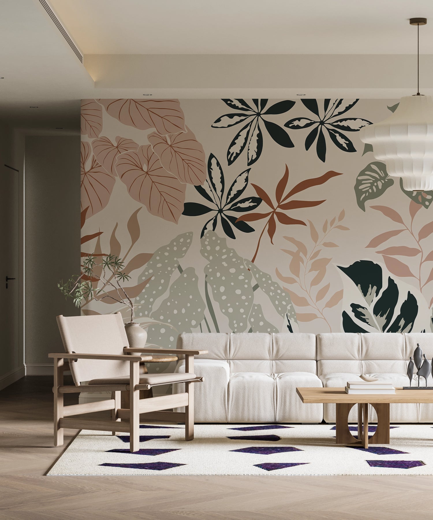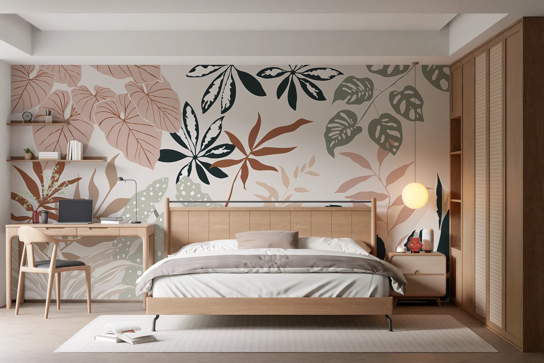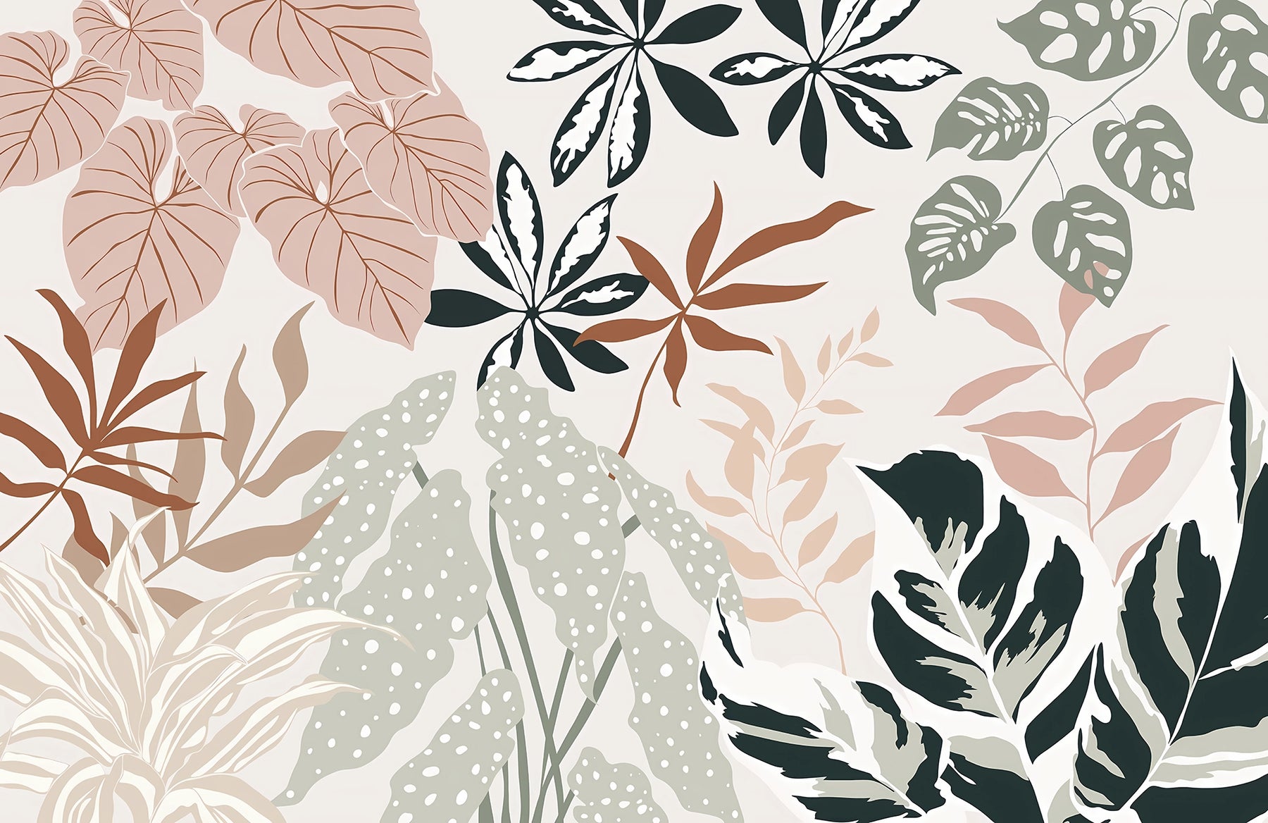 Plongez dans une ambiance apaisante et contemporaine avec le papier peint panoramique Harmonie Botanique. Ses grandes feuilles stylisées aux teintes rose, vert sauge et crème apportent une touche naturelle et élégante à votre intérieur. Idéal pour sublimer une chambre, un salon ou un espace de travail, ce décor mural transforme le mur en un véritable tableau végétal, moderne et chaleureux.