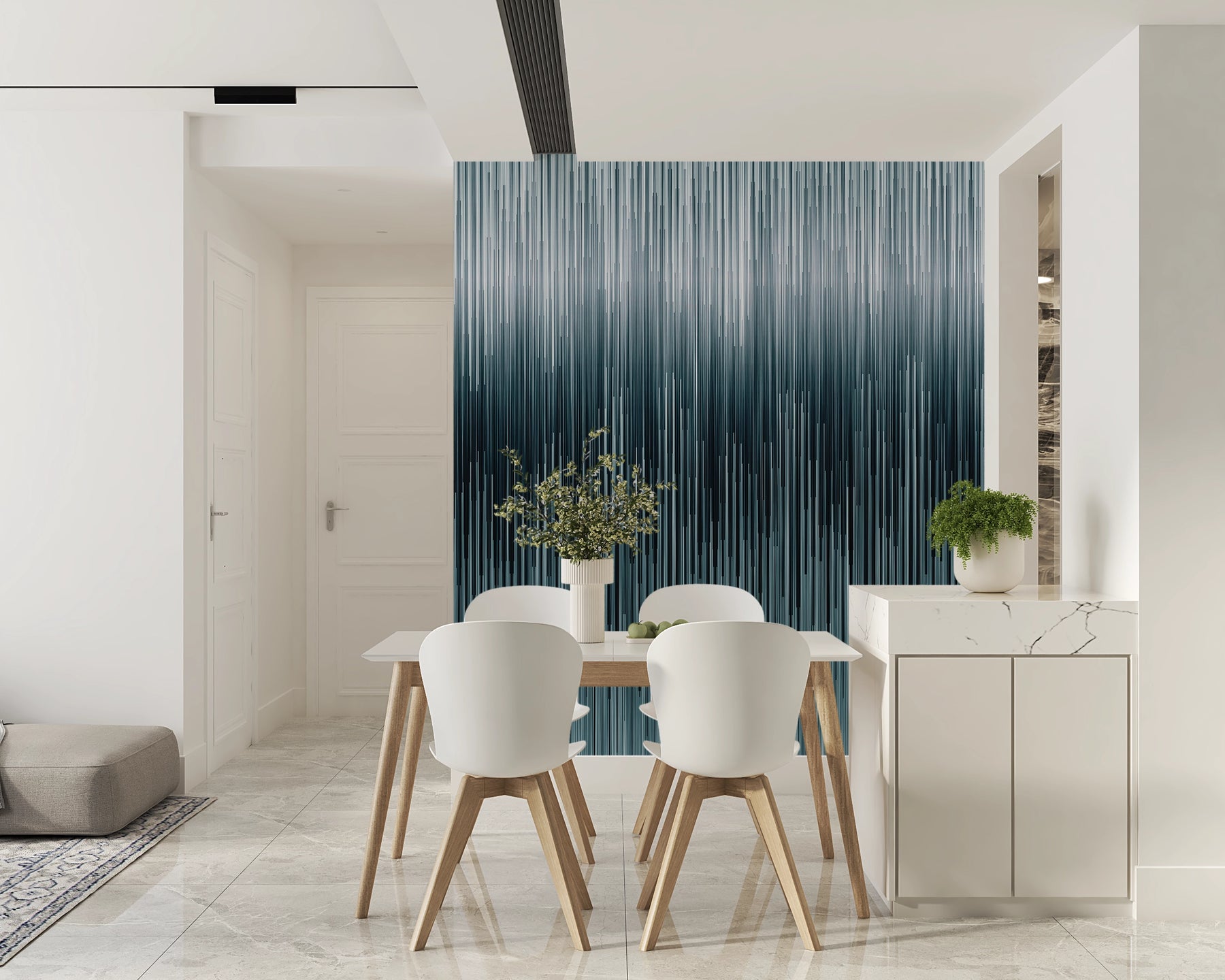 Élégant et contemporain, notre papier peint panoramique Horizon Bleu Graphique apporte une touche artistique et apaisante à votre intérieur. Ses lignes verticales dégradées, inspirées des nuances de l’océan et du ciel, créent une profondeur visuelle unique et un effet de hauteur qui agrandit la pièce.