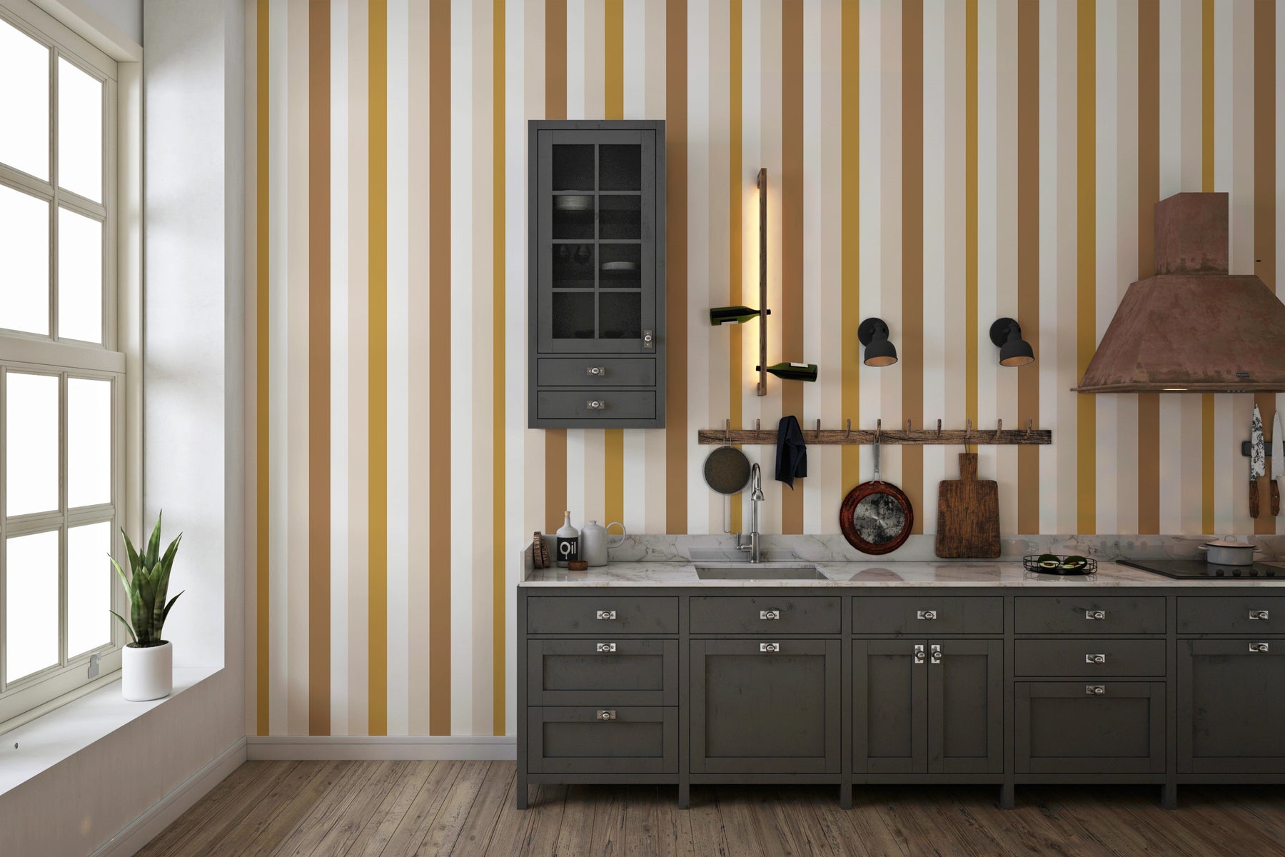 Le papier peint Rayures Toscane séduit par l’équilibre de ses lignes verticales et la douceur de sa palette : miel, sable, terracotta et ocre clair. Ce motif rayé, à la fois classique et contemporain, apporte de la hauteur visuelle et une touche chaleureuse à tous les espaces. Fabriqué en intissé de haute qualité, il s’adapte aussi bien aux intérieurs privés qu’aux projets professionnels : hôtels, boutiques, bureaux ou restaurants. Un choix sûr pour structurer un mur avec élégance, sans surcharger la décoration.
