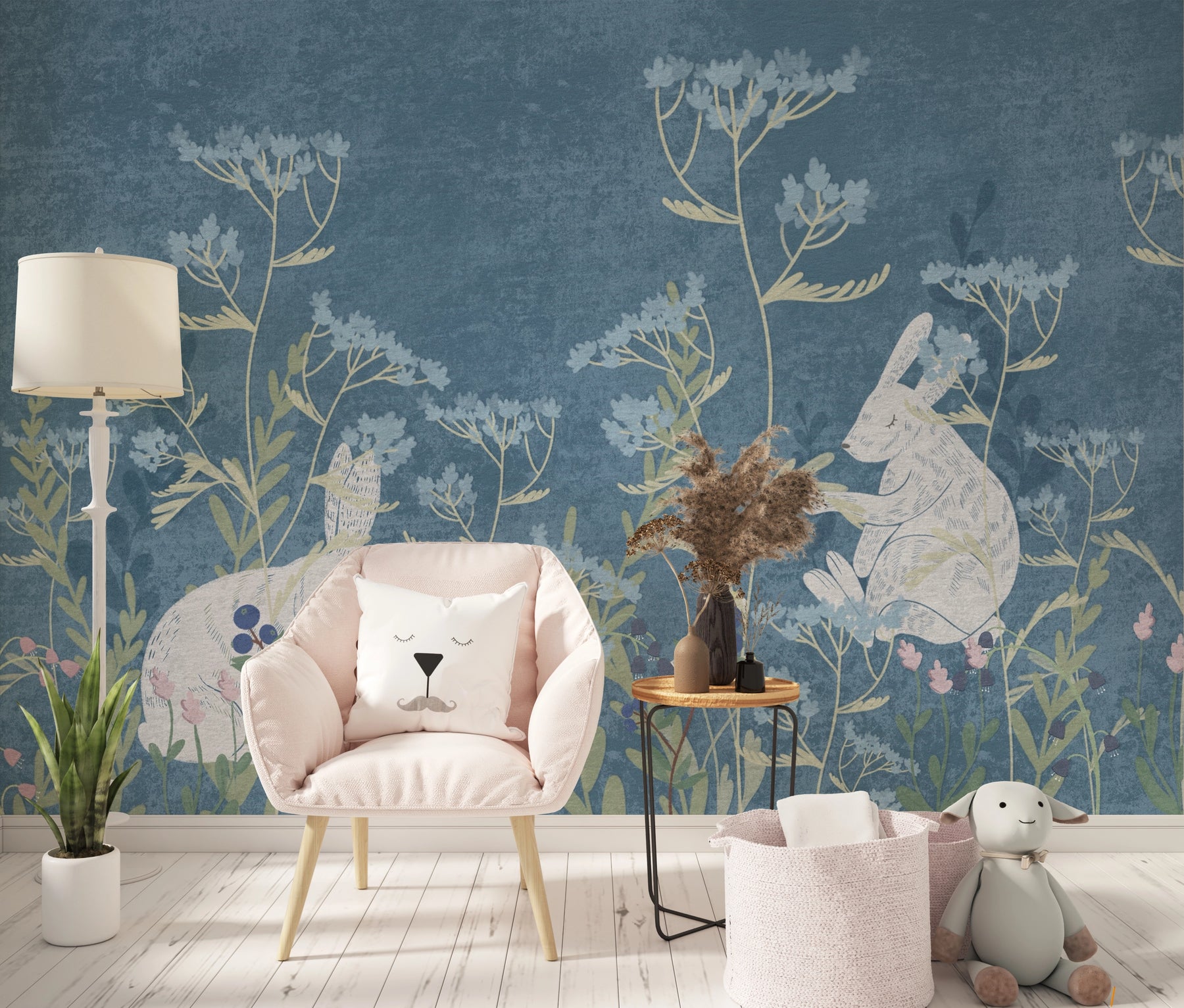 Papel Pintado Infantil – Conejos y Flores Silvestres