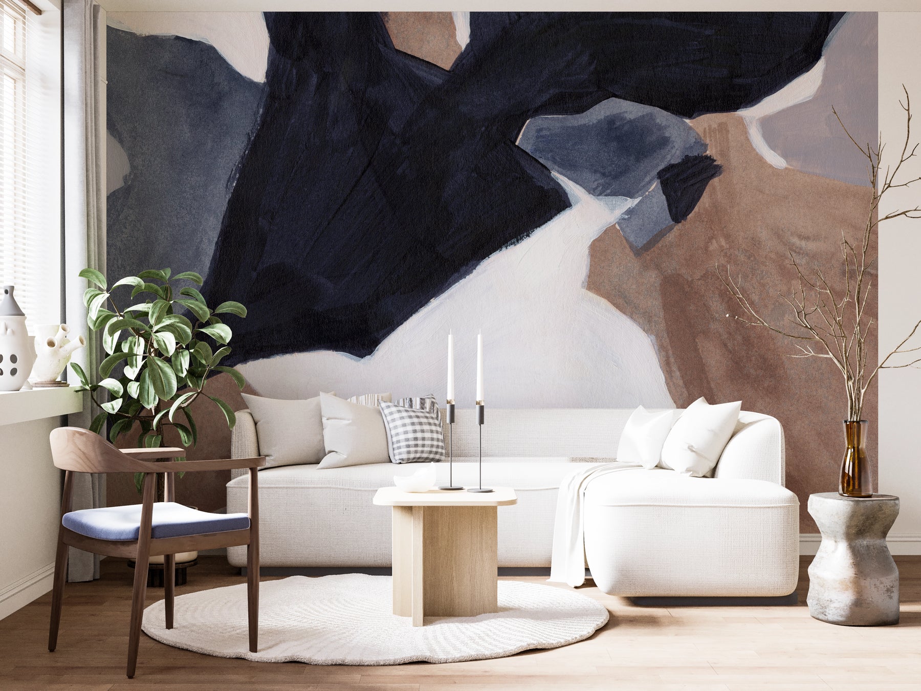 Entre mouvement et matière, le papier peint panoramique Abstraction Minérale évoque la beauté brute des éléments naturels. Ses nuances profondes de brun, d’ardoise et de blanc se mêlent dans une composition abstraite à la fois douce et puissante.